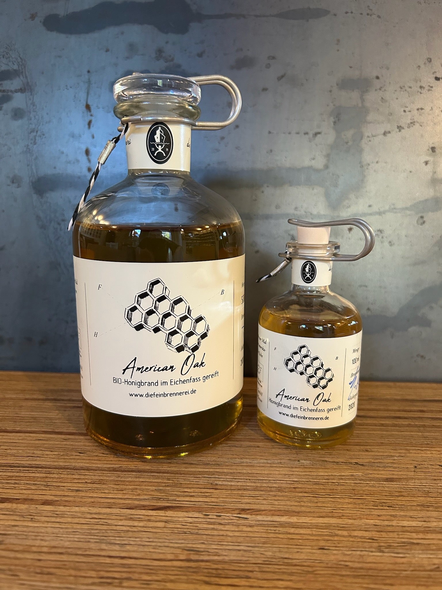 Der Bio-Honig aus Barnim wurde vier Mal gebrannt und für weitere acht Monate im amerikanischen Weiß-Eichefass gereift. Die Rauheit der Eiche gepaart mit der Süße des gebrannten Honigs bringt einen zurück an gemütliche Kaminabende in geselliger Runde.